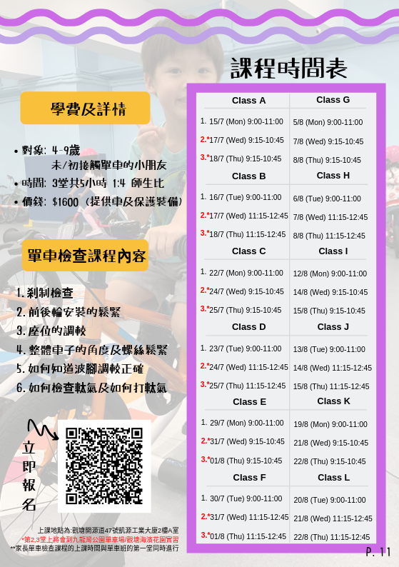 - 送家長"單車檢查速成班"一節 (價值$300)