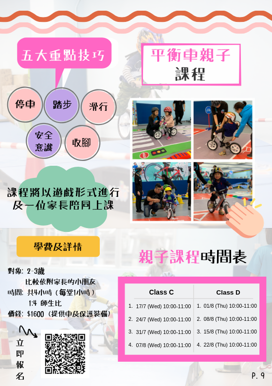 對象: 4-9歲,未/初接觸單車的小朋友